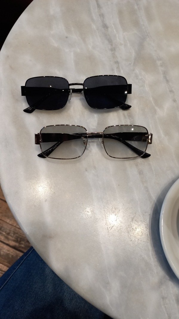 Gafas rectangulares intermedias. Marcos, bisagras y patillas metalicas plateadas. Cristal organico verde clarito. Proteccion UV400 + Estuche. Tu envio llega seguro, nos aseguramos de que el embalaje sea el adecuado para que no sufra ningun daño.
