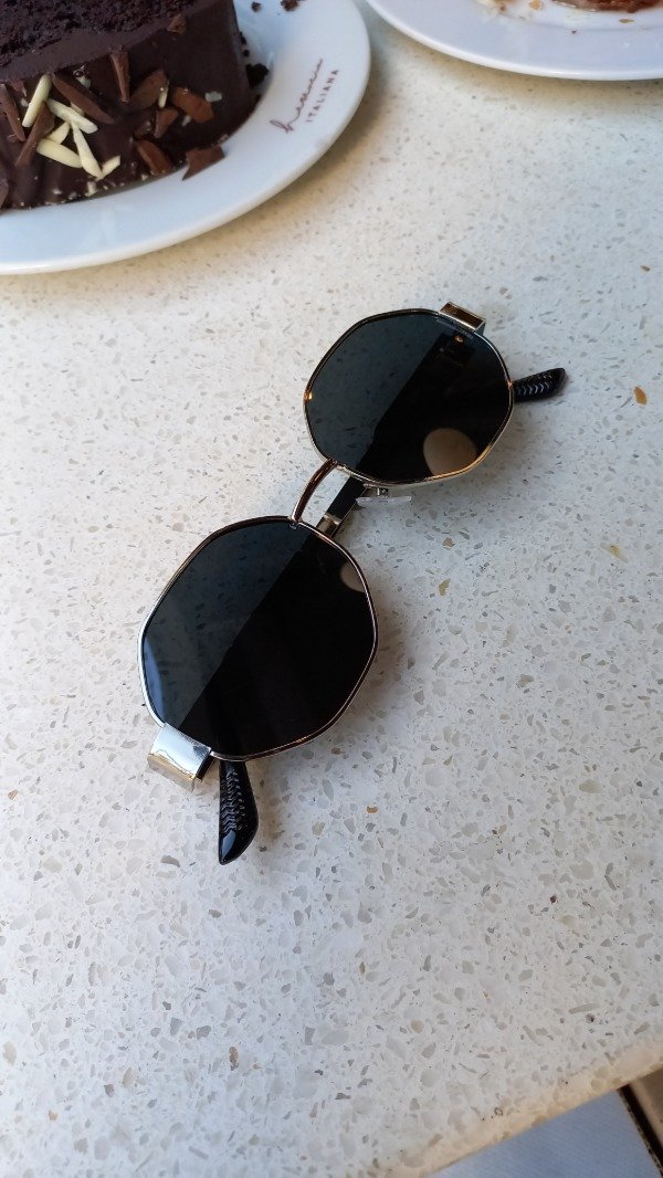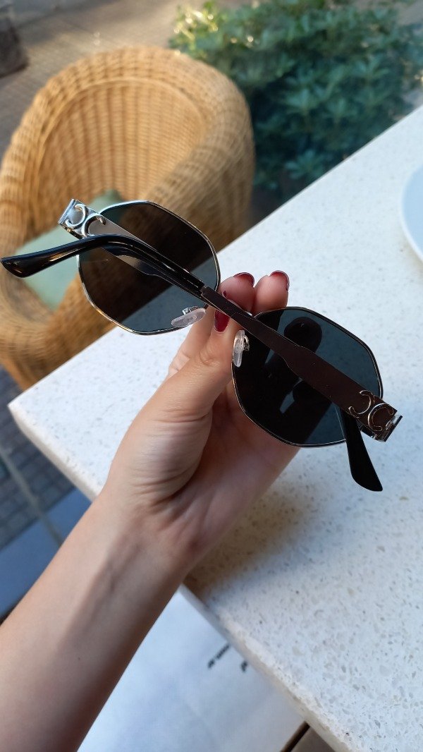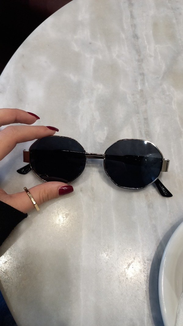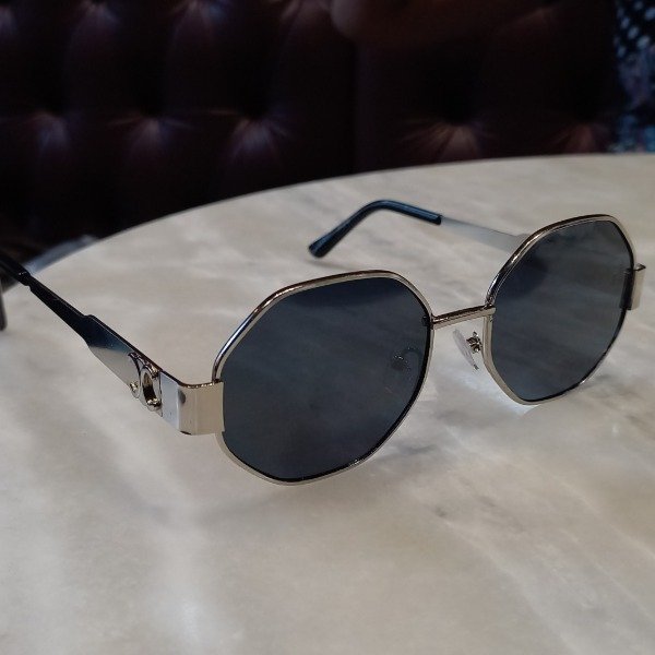 Gafas hexagonales redondeadas. Marcos, bisagras y patillas metalicas plateadas. Cristal organico negro. Proteccion UV400 + Estuche. Tu envio llega seguro, nos aseguramos de que el embalaje sea el adecuado para que no sufra ningun daño.
